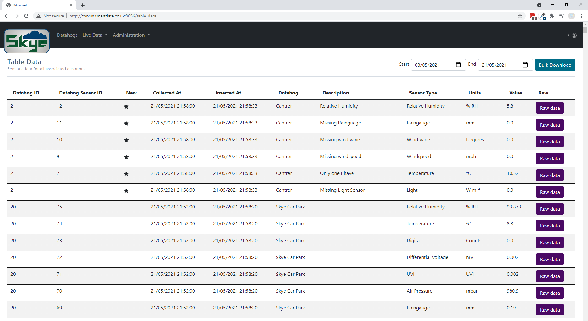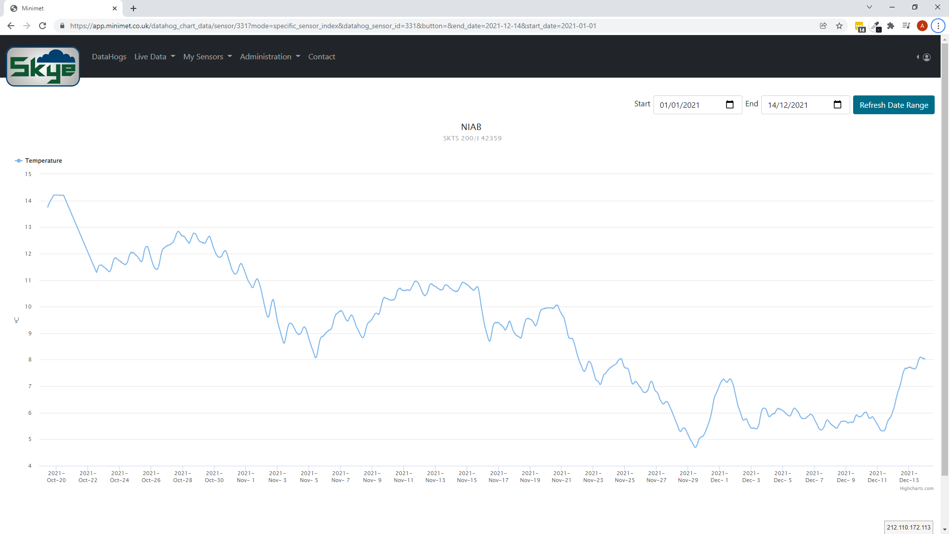 Integrated with legacy hardware utilising FTP the new system supports a live view of their weather station including bulk downloads and dynamic live view chart components